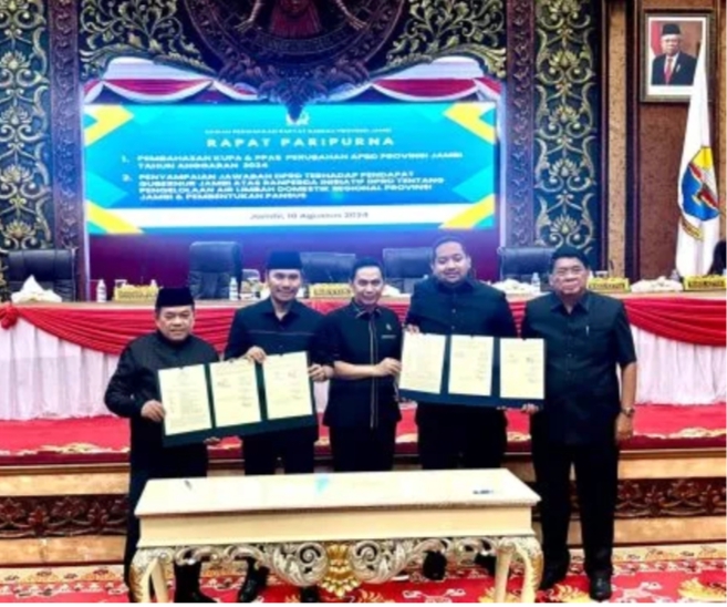 Sementara itu, dalam Rapat Paripurna ini dilakukan Penandatanganan Nota Kesepakatan KUPA dan PPAS Perubahan APBD Tahun Anggaran 2024 antara Gubernur bersama Pimpinan DPRD Provinsi Jambi.