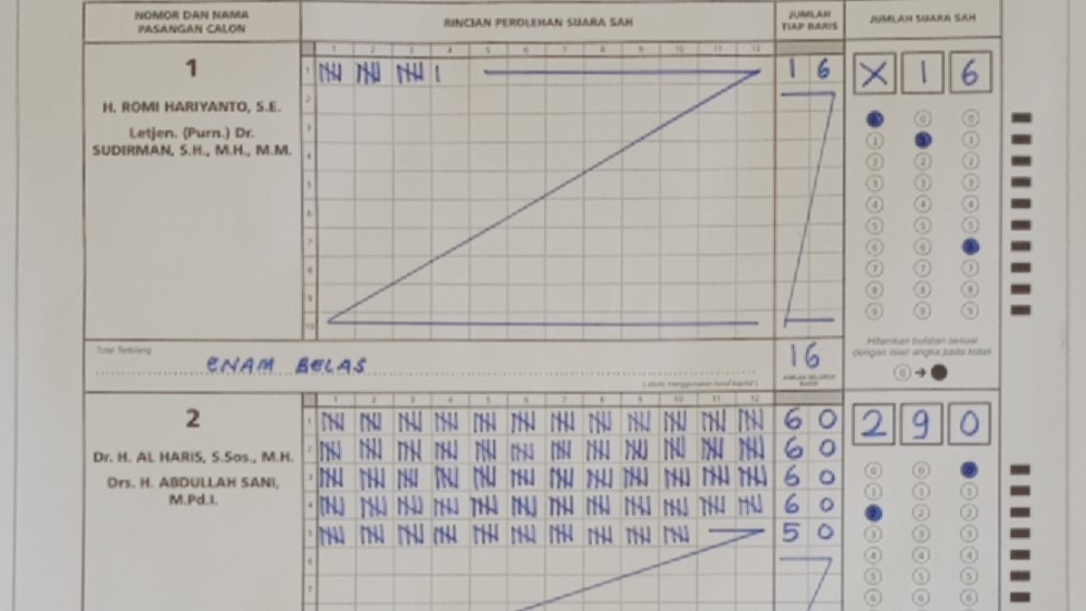 Hal yang sama juga terjadi di TPS 3 Raden Anom Batang Asai, Haris-Sani kembali menang telak dengan meraih 161 suara, sementara RH-Sudirman meraih 14 suara.