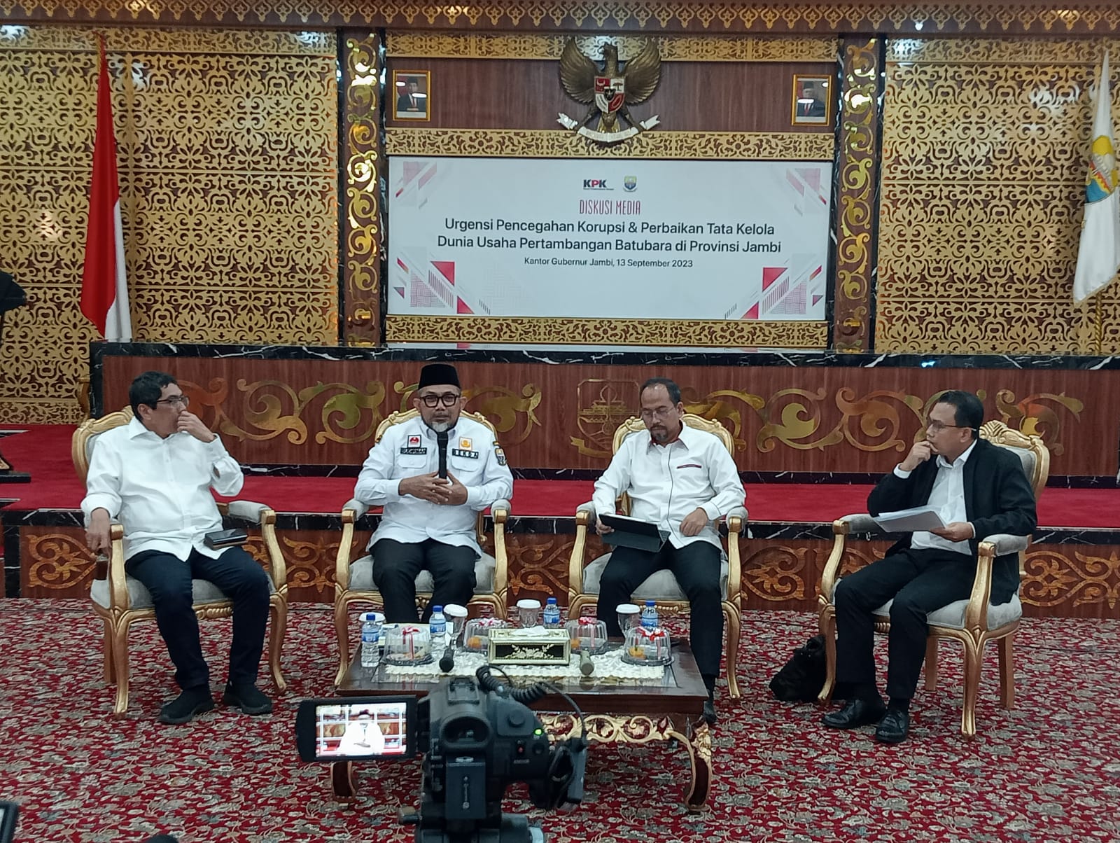 Diskusi ini dipandu langsung oleh juru bicara KPK Ali Fikri dengan menghadirkan tiga narasumber, yaitu Sekda Provinsi Jambi Sudirman, Ketua Asosiasi Pengusaha Batubara Fredy Haris dan Direktur Antikorupsi Badan Usaha, Komisi Pemberantasan Korupsi Republik Indonesia (KPK RI) Aminudin.