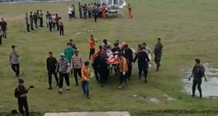 Helikopter Pertama Mendarat di Posko KONI Merangin, Membawa 2 Korban Co Pilot dan Adc Kapolda<br>